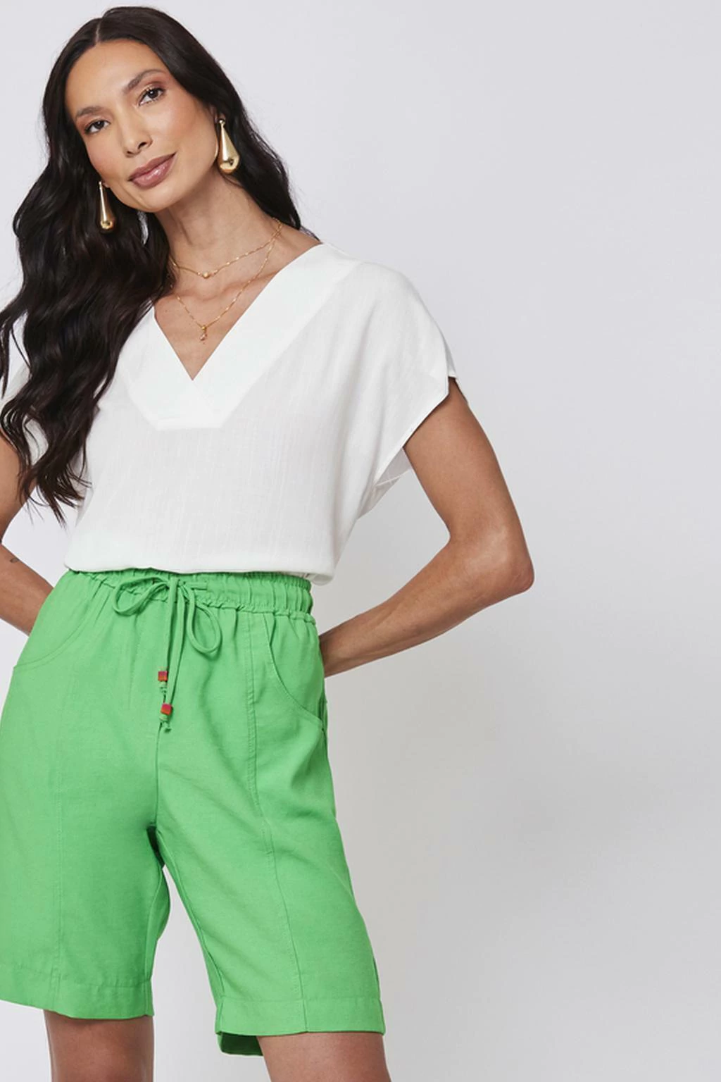 Combine a Bermuda Alfaiataria Confort Verde com uma blusa de alfaiataria para um look mais sofisticado, ou opte por uma t-shirt básica para um visual casual e descontraído. Complete o look com sandálias ou tênis, dependendo da ocasião.
