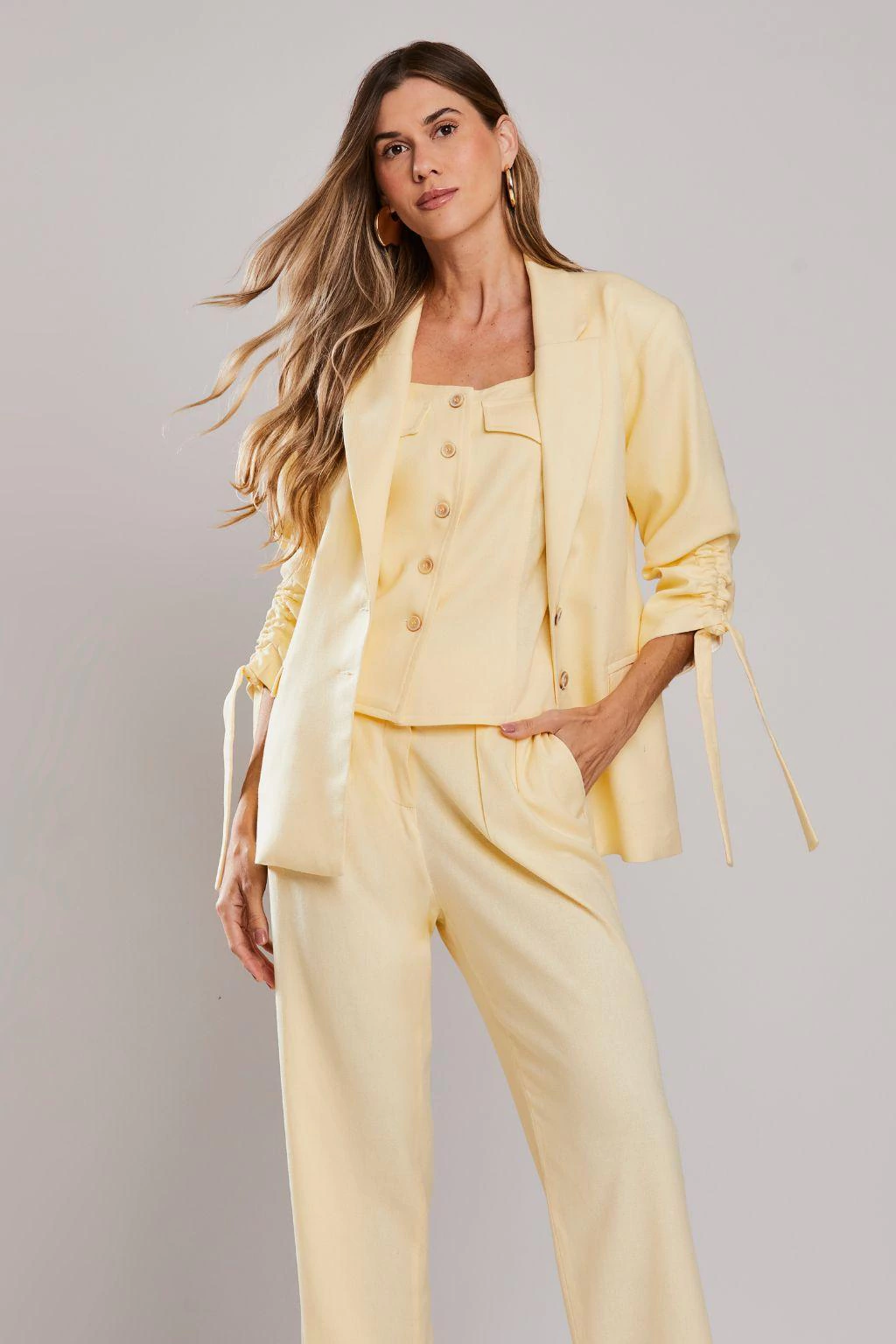 O Blazer Oversized Span Braga Amarelo Claro da Rubinella é a escolha ideal para mulheres que desejam uma peça versátil, moderna e cheia de estilo. Adicione ao seu carrinho agora e transforme seu guarda-roupa com esta peça exclusiva da coleção!