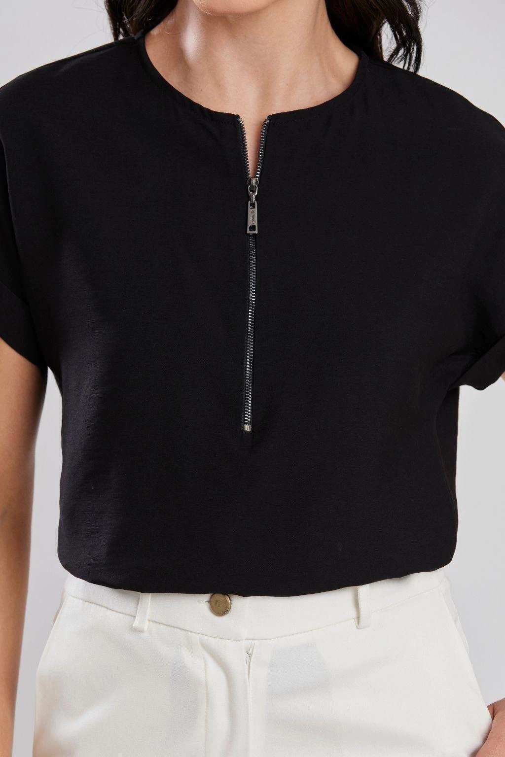 A Blusa Básica Zíper Preta da Rubinella é a escolha perfeita para mulheres que buscam uma peça versátil e cheia de estilo. Adicione ao seu carrinho agora e eleve seu guarda-roupa com esta peça essencial da coleção!