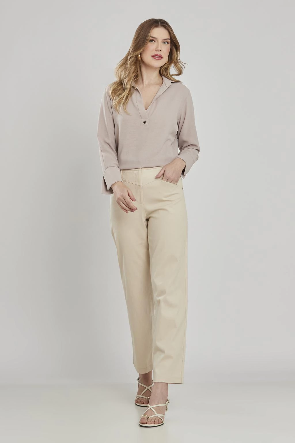 A Blusa da Rubinella é a união perfeita entre sofisticação e praticidade. Confeccionada em poliéster leve e fluido, possui caimento elegante e confortável, ideal para produções que vão do trabalho a ocasiões casuais refinadas.Seu design clean ganha destaque com a gola inspirada na camisaria e o decote em “V” discreto com ilhos de detalhe. As mangas longas retas finalizadas com punhos largos trazem um toque contemporâneo, equilibrando feminilidade e estilo urbano. Composição: 100% poliéster