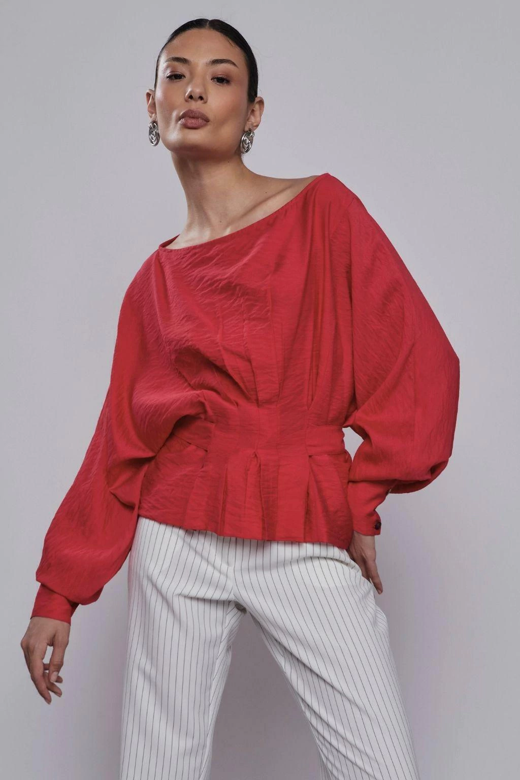 A Blusa Com Amarração Vermelho da Rubinella é uma peça versátil que combina o charme da alfaiataria com um toque casual, perfeita para mulheres que buscam elegância e conforto em seu dia a dia. Confeccionada em um tecido leve de rayon, esta blusa apresenta uma modelagem ampla e acinturada que valoriza a silhueta, enquanto o decote careca e as mangas longas garantem um visual sofisticado. O detalhe da amarração nas costas adiciona um toque de modernidade e exclusividade à peça.