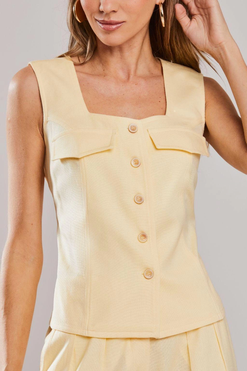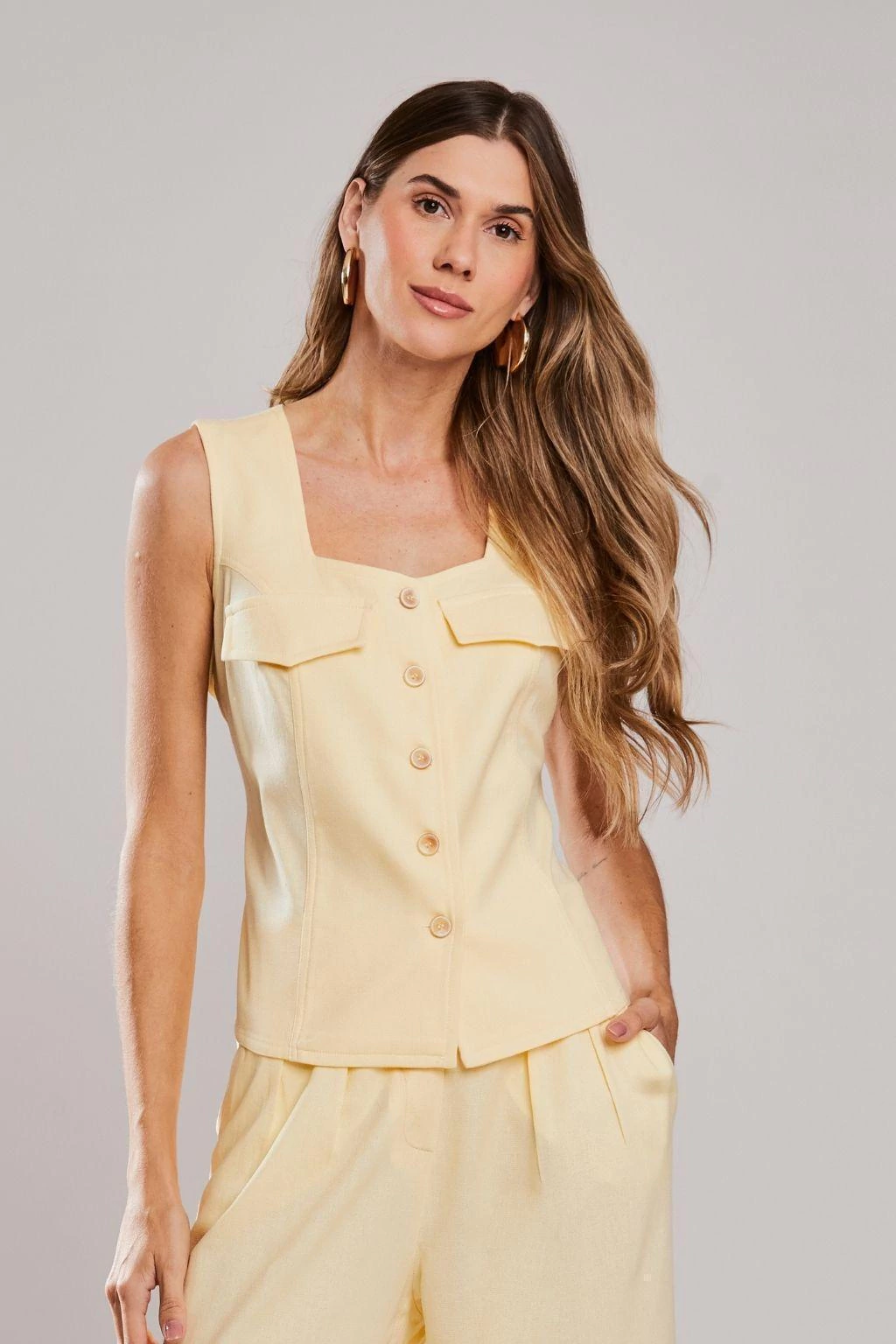 A Blusa Corset Alfaiataria Span Amarelo Claro da Rubinella é a escolha ideal para mulheres que buscam uma peça elegante e versátil para compor looks sofisticados e casuais. Adicione ao seu carrinho agora e destaque-se com esta peça única da coleção!