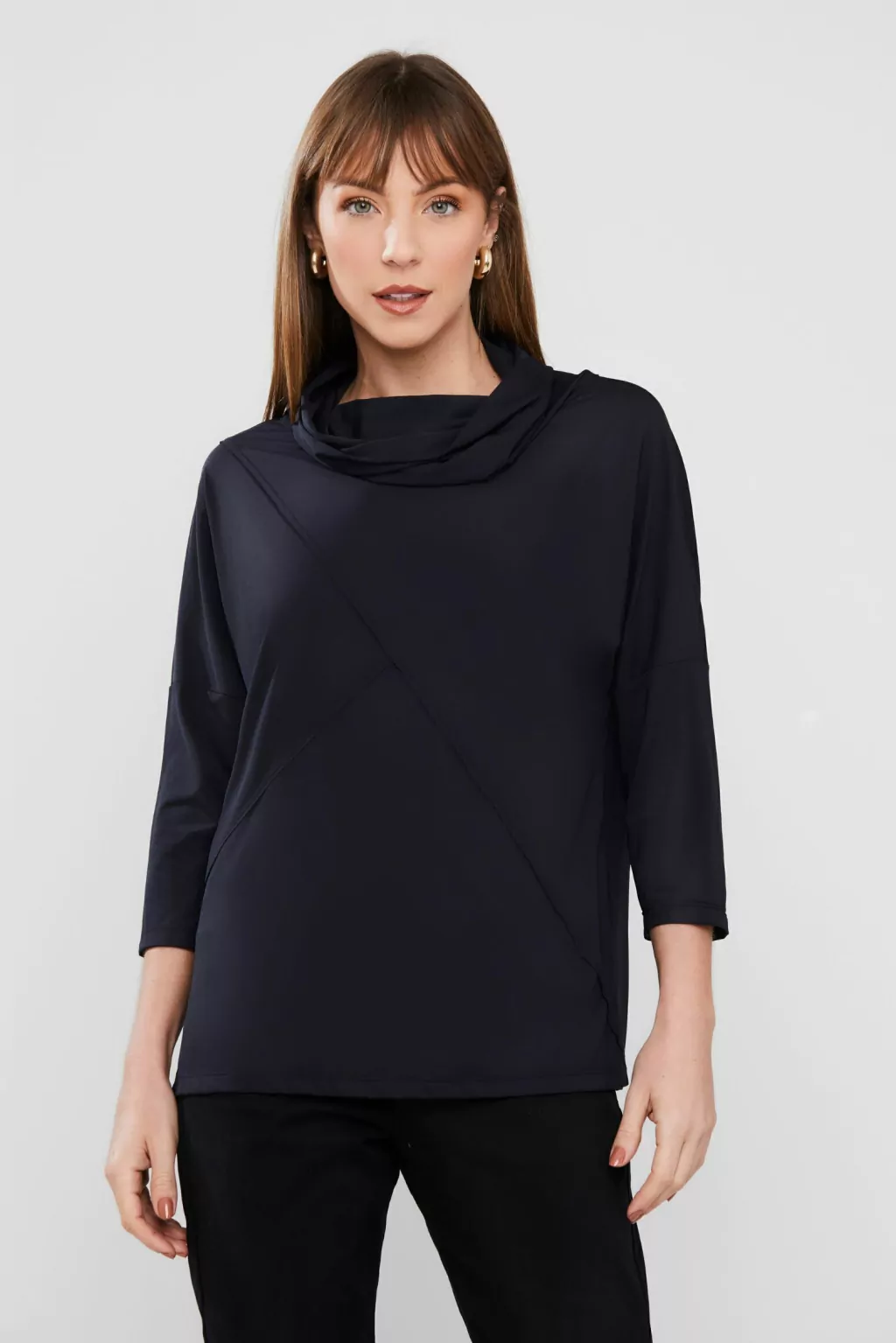 A blusa de malha Techno Ice se destaca pelo design inovador e versátil. A cor preta adiciona um toque de elegância e facilidade para combinar com outras peças do seu guarda-roupa. As mangas 7/8 e a gola boba proporcionam um visual contemporâneo e sofisticado, enquanto a modelagem solta garante conforto e liberdade de movimento.