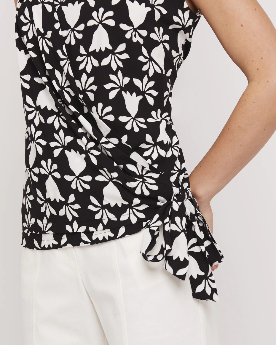 A Blusa Drapeada Única da Rubinella é a escolha ideal para quem busca uma peça que une conforto e elegância. Confeccionada em 100% viscose, esta blusa apresenta um design sem mangas que proporciona frescor e leveza, perfeita para os dias mais quentes. O decote arredondado e o laço na barra adicionam um toque de sofisticação e charme, tornando-a uma peça versátil para diversas ocasiões.