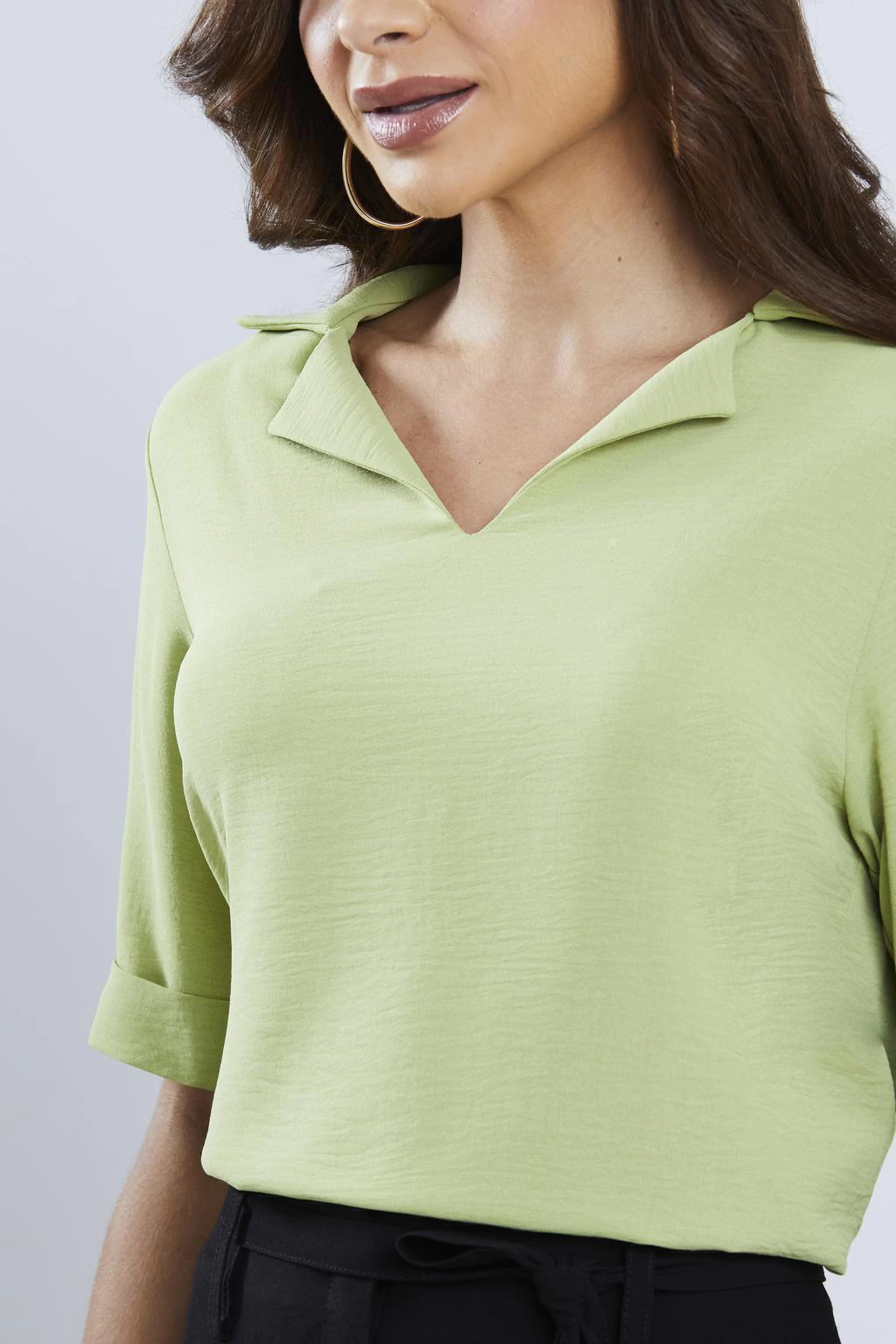 A Blusa Manga 3/4 Gola V Verde Folha da Rubinella é a escolha ideal para quem busca uma peça que une leveza e sofisticação. Confeccionada em poliéster de alta qualidade, esta blusa apresenta uma modelagem reta e atemporal, perfeita para diversas ocasiões. O decote em gola esporte com abertura em V proporciona um toque descontraído, enquanto as mangas 3/4 com dobra na barra adicionam um detalhe moderno e clean, tornando-a versátil para o uso diário ou para compor looks mais elegantes.
