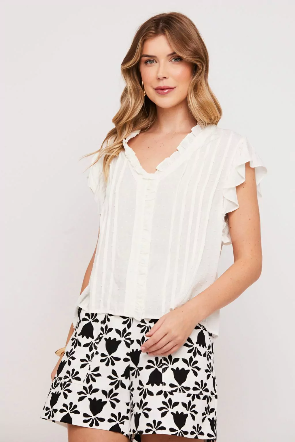 A Blusa Feminina Poá Off White da Rubinella é uma peça sofisticada e delicada, perfeita para mulheres que desejam combinar romantismo e elegância no dia a dia. Confeccionada em tecido 100% viscose, apresenta poá maquinetado com textura discreta e detalhes em pregas e babados. A gola em V com vista embutida adiciona um toque de charme, enquanto a modelagem fluida garante conforto e leveza.