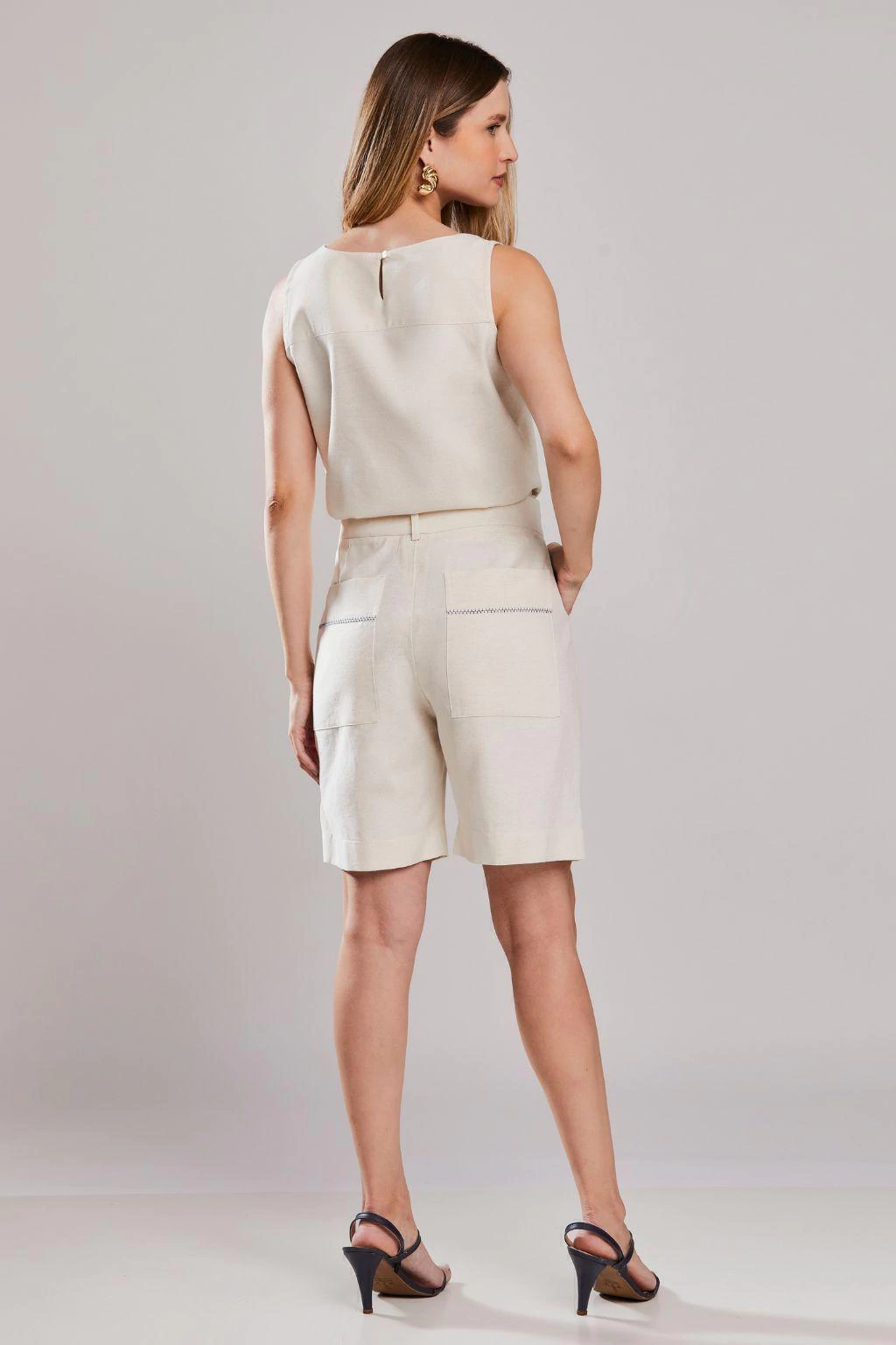 A Blusa Regata Bordada Azul Crú da Rubinella é a união perfeita entre minimalismo e estilo. Com uma modelagem reta e gola careca, esta regata aposta na simplicidade como base para um design sofisticado. O destaque fica por conta dos pespontos em três tons diferentes, estrategicamente posicionados para criar um contraste moderno e delicado sobre o tecido natural, resultando em uma peça versátil e elegante, ideal para quem busca um visual contemporâneo e nada óbvio.