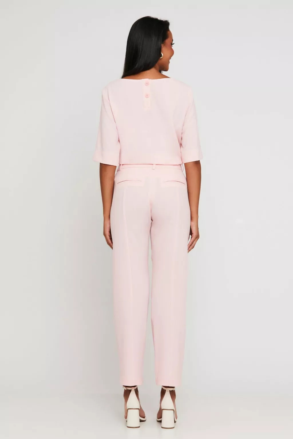Combine a Calça Alfaiataria Reta Verona Rosa Claro com blusas de tecido leve para um look de trabalho sofisticado ou com camisas estruturadas para ocasiões mais formais. Complete o visual com sapatos de salto para um estilo elegante e feminino.