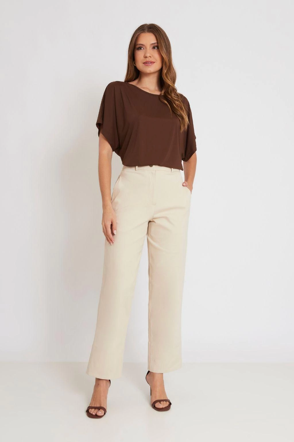 Combine a Calça Boot Cut Cropped Papillon Areia com uma blusa de seda ou uma camisa clássica para um look de trabalho chic. Para um visual mais casual, opte por uma t-shirt básica e tênis brancos. Adicione acessórios delicados para um toque final elegante.