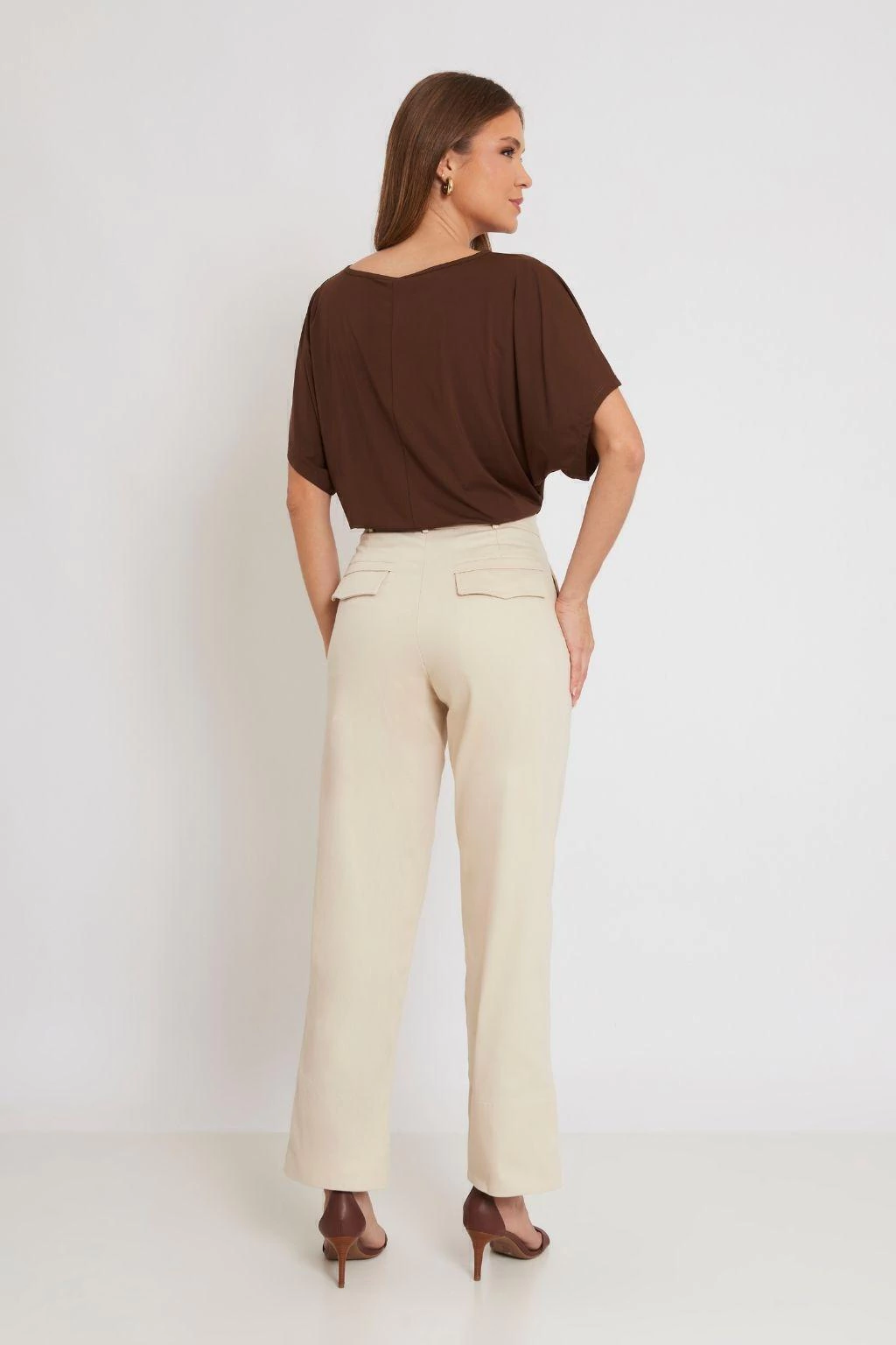 A Calça Boot Cut Cropped Papillon Areia da Rubinella é a escolha ideal para quem deseja unir sofisticação e modernidade em uma única peça. Confeccionada em sarja estruturada, esta calça proporciona um caimento perfeito e um toque suave ao toque. Seu design boot cut, com barra levemente aberta, não apenas valoriza a silhueta, mas também adiciona um toque contemporâneo ao look. Os recortes discretos e os pontos de costura contrastantes em tom off trazem um detalhe refinado, ideal para compor visuais tanto sociais quanto casuais.