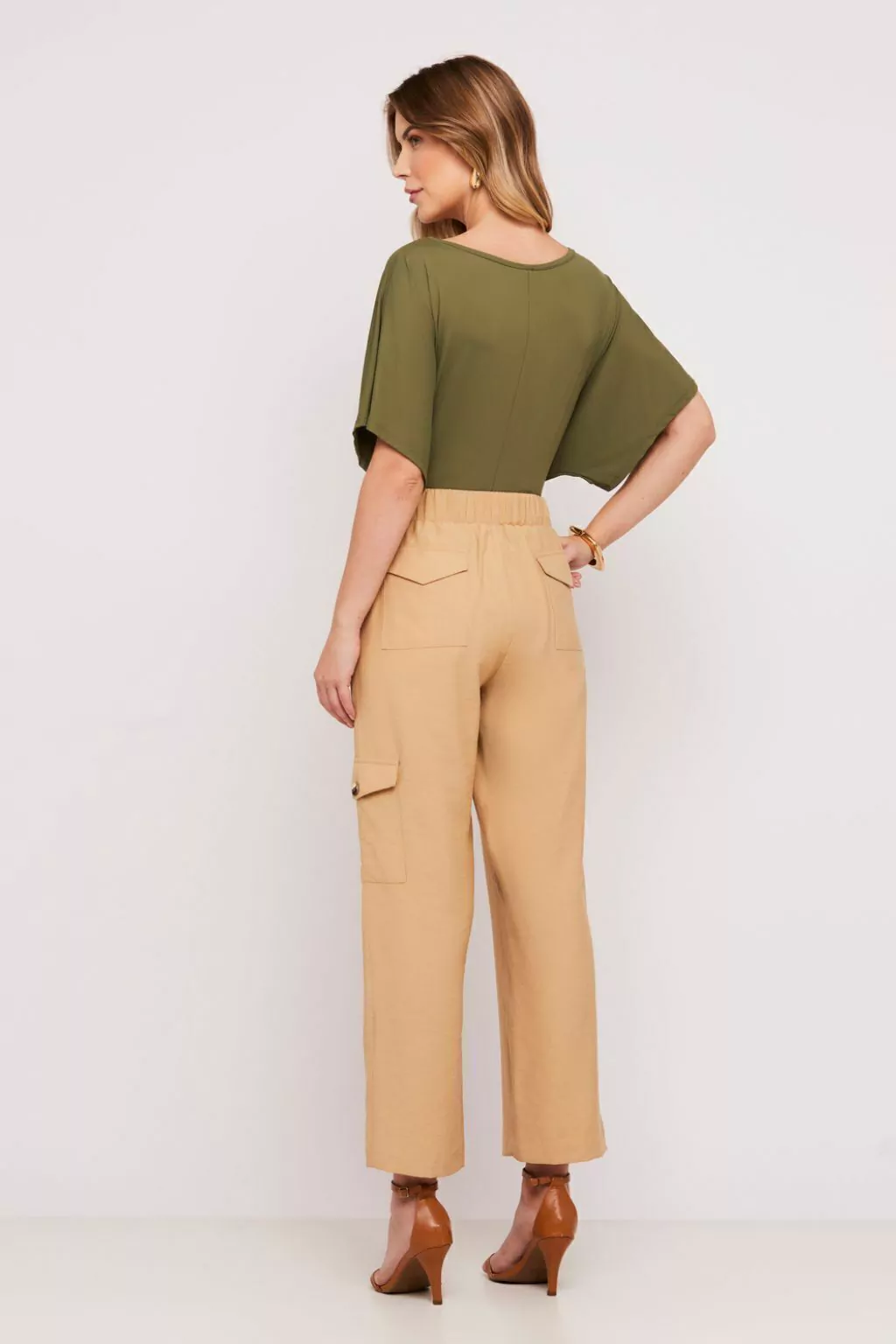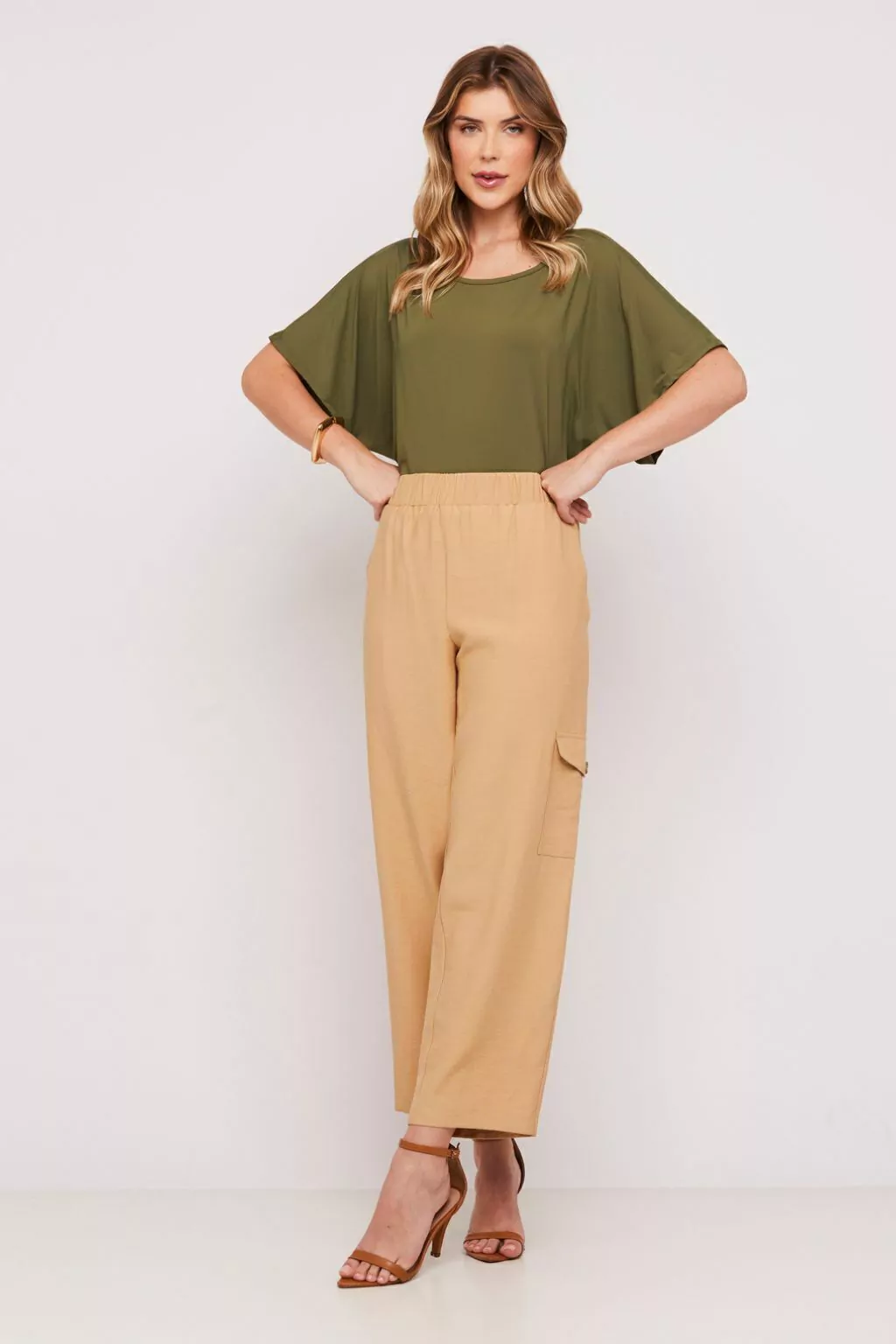 Combine a Calça Cargo Confort Bege com blusas de alfaiataria ou camisetas leves para um look casual chic. Adicione sandálias ou tênis para um estilo descontraído, ou opte por sapatos de salto para elevar a sofisticação do visual.