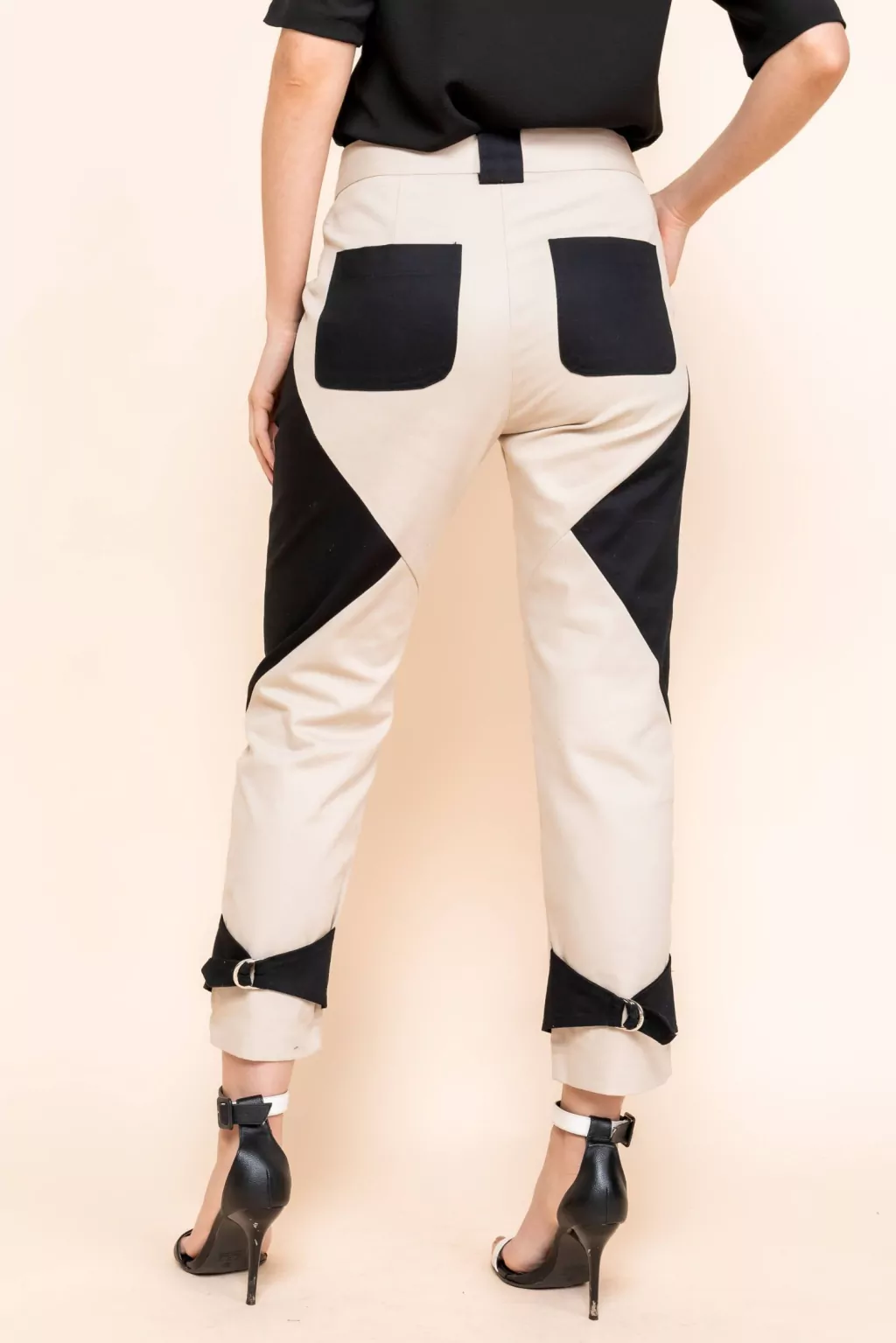 A Calça Duo Color da Rubinella é uma peça moderna e cheia de estilo, ideal para mulheres que procuram uma alfaiataria diferenciada e impactante. Confeccionada em algodão com elastano, esta calça combina o conforto de um caimento perfeito com o toque fashion dos recortes em preto tipo patchwork. Seu design utilitário, com bolsos frontais e traseiros, é perfeito para quem busca funcionalidade sem abrir mão da sofisticação. A cintura alta garante um visual elegante e alongado, enquanto o fechamento interno confere discrição e acabamento impecável.