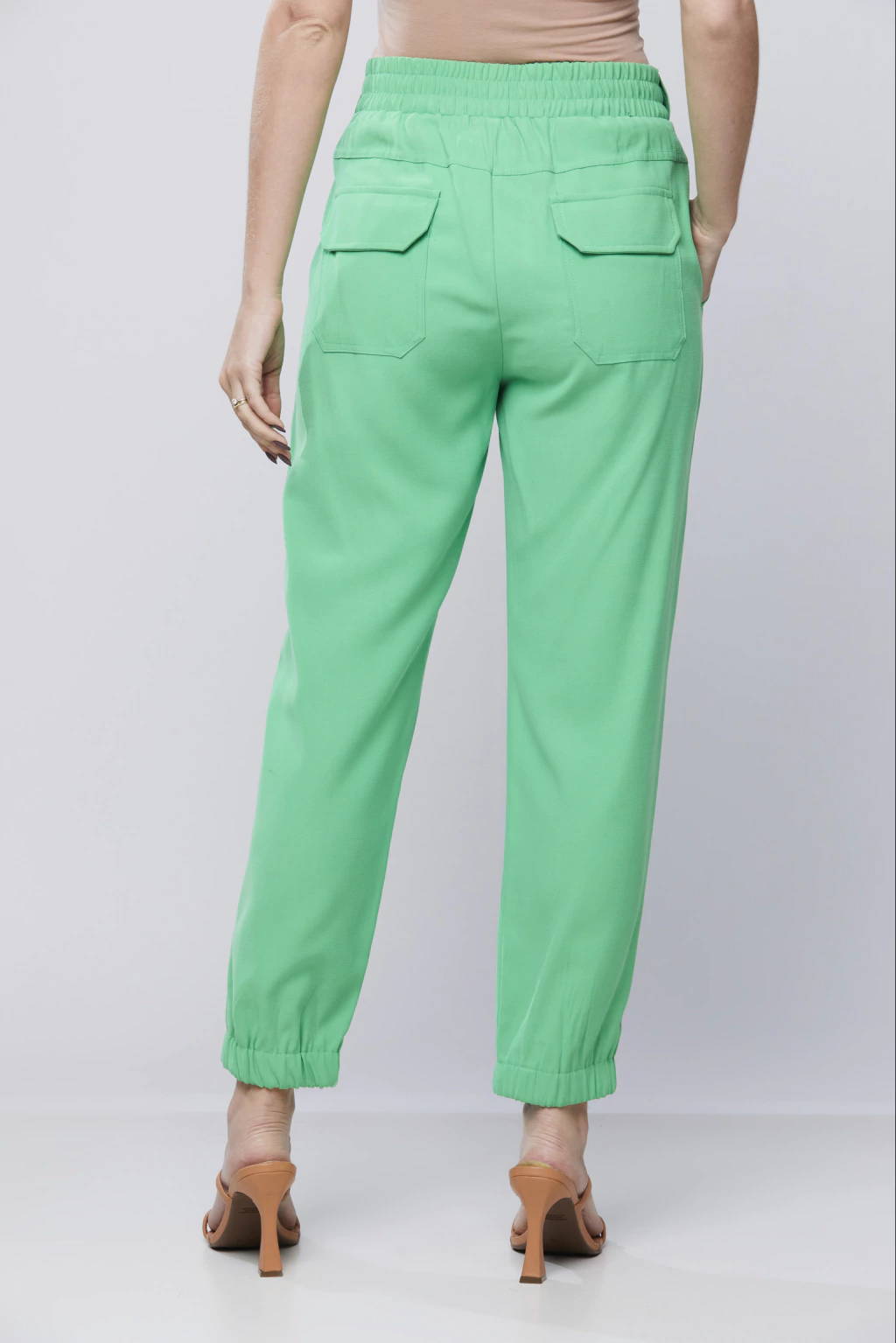 A Calça Pescador Crepe Berlim Verde é extremamente versátil e pode ser combinada de várias maneiras: