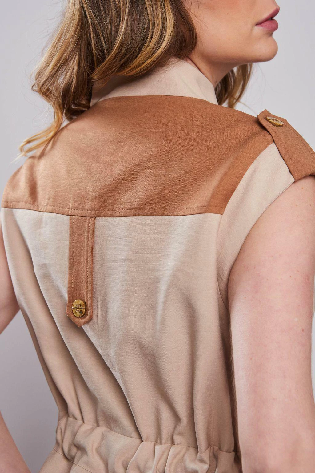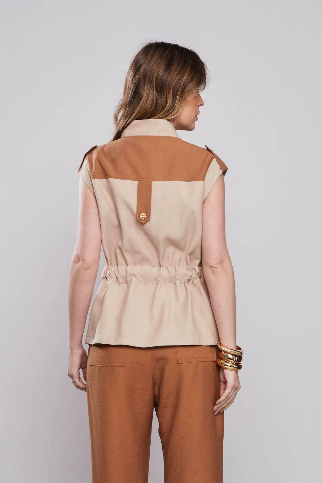 O Colete Bicolor Viscose Helena Aveia da Rubinella é a escolha perfeita para quem busca unir modernidade e funcionalidade em uma peça marcante. Confeccionado em alfaiataria de viscose, este colete apresenta uma modelagem reta que se adapta a diferentes tipos de corpo, oferecendo um caimento impecável. Os martingales nos ombros conferem um charme especial, enquanto os elásticos ajustáveis na cintura permitem personalizar o ajuste, valorizando ainda mais a silhueta.