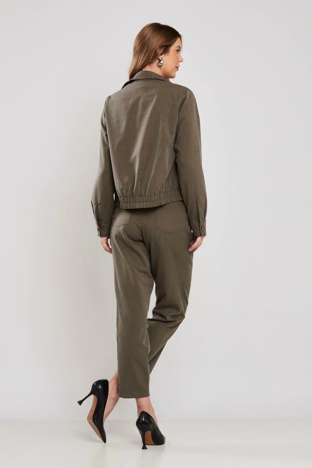 Combine a Jaqueta Cropped Teva Pinho com uma blusa de seda e uma saia midi para um look sofisticado e feminino, ou use-a sobre uma camiseta básica e calças jeans para um visual casual e moderno. A peça é ideal para transitar do dia para a noite, bastando trocar os acessórios para um toque mais glamouroso.