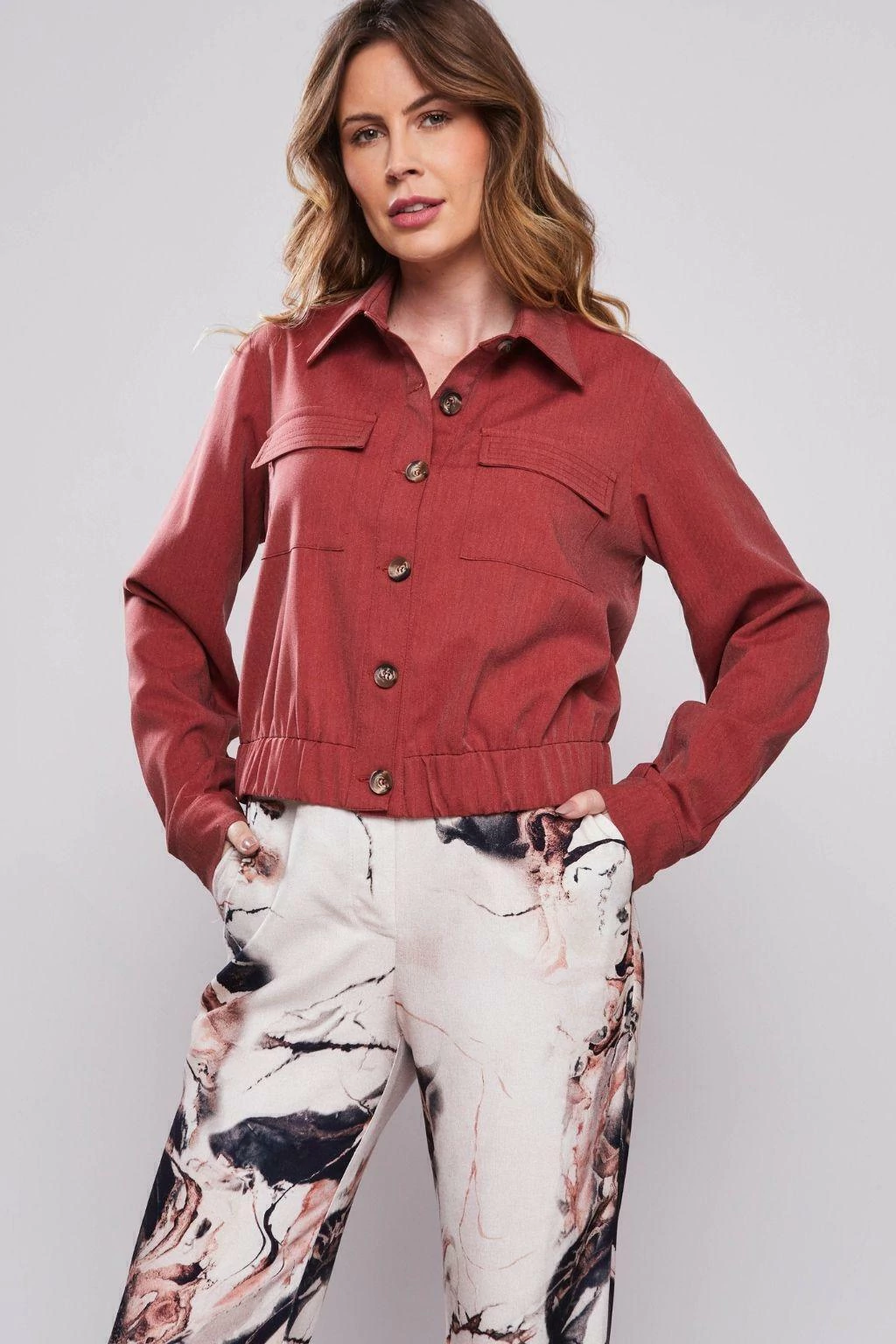 A Jaqueta Cropped Teva Vermelho Telha da Rubinella é a escolha ideal para mulheres que desejam uma peça que une sofisticação e modernidade. Adicione ao seu carrinho agora e destaque-se com esta peça única da coleção!