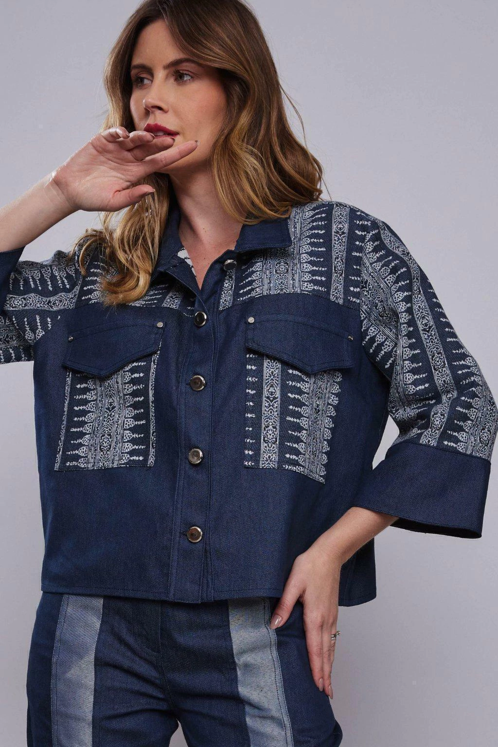Combine a Jaqueta Jeans Western Única com uma blusa de seda e calças de alfaiataria para um look sofisticado e moderno, ou use-a sobre uma camiseta básica e jeans para um visual casual e despojado. Complemente o look com botas de couro ou sapatilhas elegantes para um toque final perfeito.
