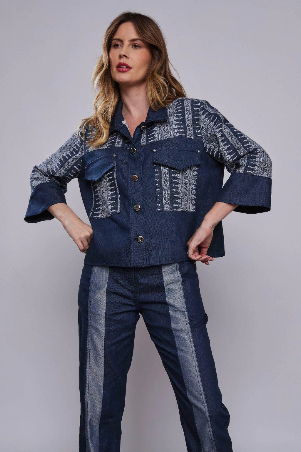 A Jaqueta Jeans Western Única da Rubinella é a escolha ideal para mulheres que desejam unir estilo e autenticidade em uma única peça. Com uma modelagem em A que valoriza a silhueta, esta jaqueta apresenta bolsos frontais sobrepostos com lapelas e rebites, trazendo um toque de inspiração western ao clássico blue jeans. O fechamento da vista é feito com botões personalizados em níquel, que garantem um acabamento premium e diferenciado, ideal para quem busca um visual marcante e contemporâneo.