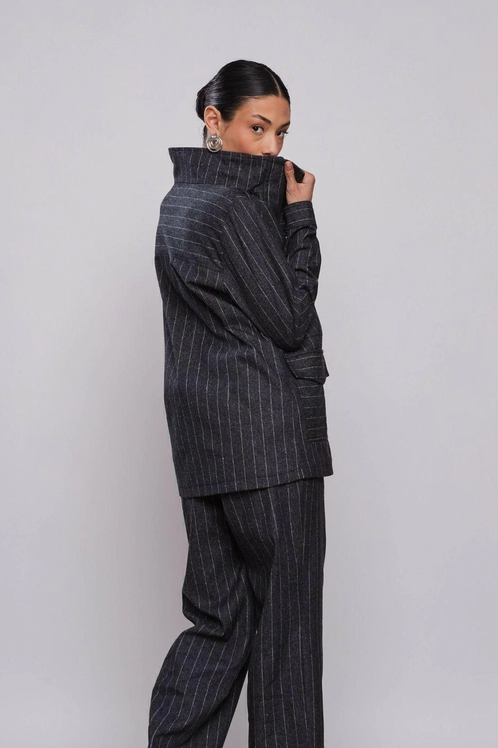A Jaqueta Maxi Jeans Chalk Gray da Rubinella é a peça perfeita para quem busca um estilo moderno e despojado. Com uma modelagem ampla e alongada, esta jaqueta proporciona conforto sem abrir mão da elegância. Os bolsos sobrepostos, com um jogo de listras em diferentes direções, conferem um toque dinâmico e contemporâneo ao visual. A gola alongada pode ser usada de duas formas: fechada, para um look mais sofisticado, ou aberta, criando uma lapela ampla e imponente.