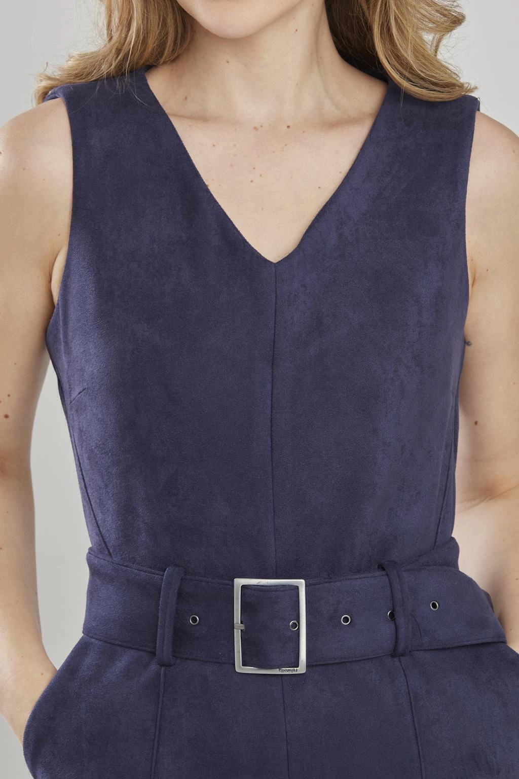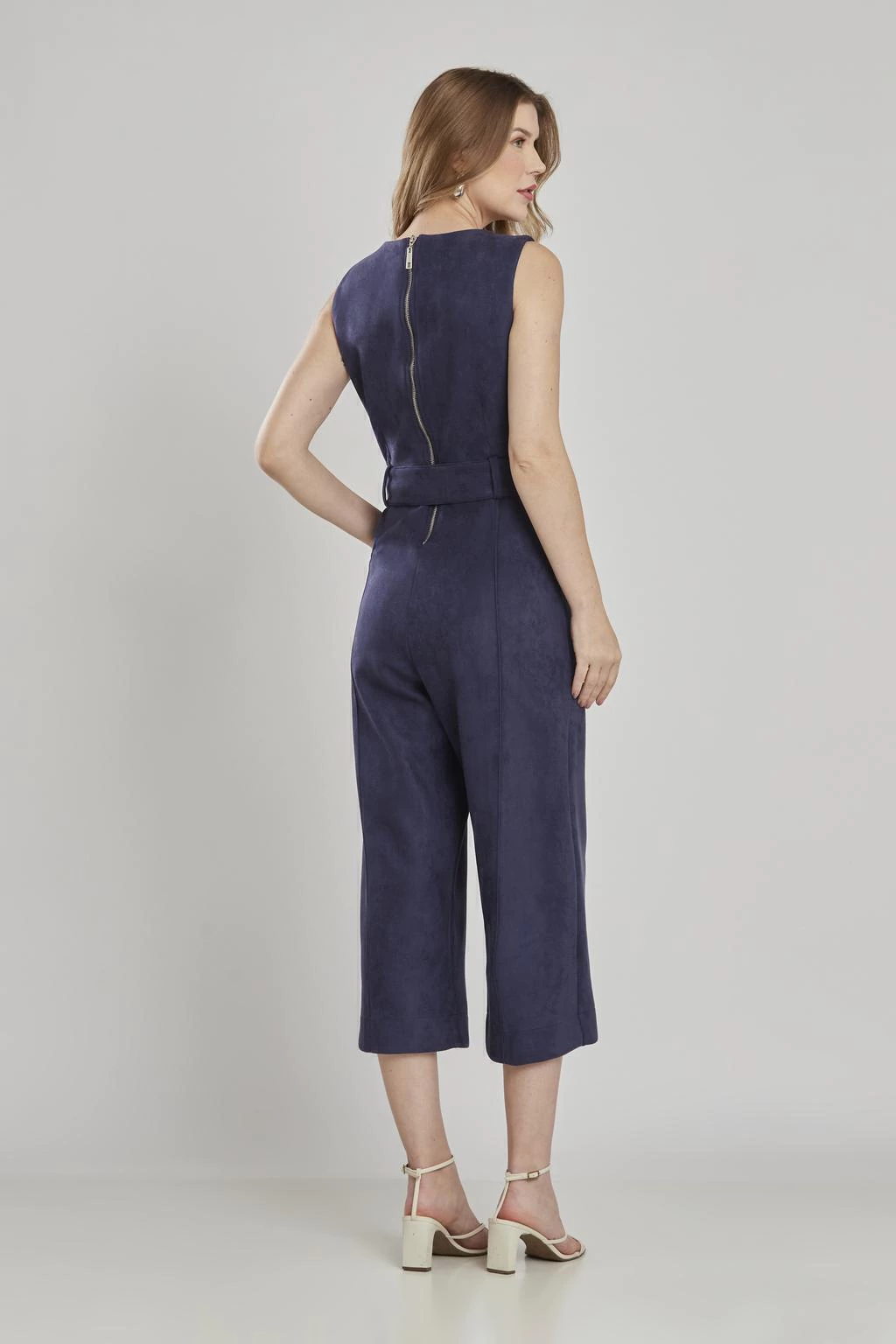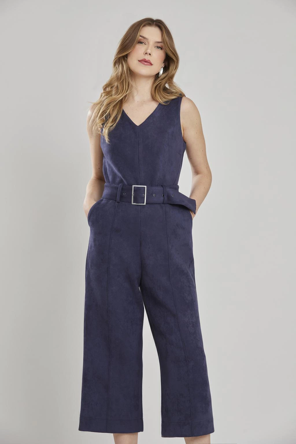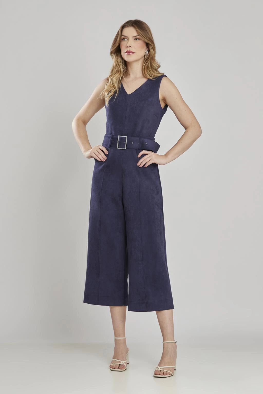 O macacão surge em uma proposta contemporânea com silhueta reta e moderna, perfeito para quem busca elegância com praticidade. Confeccionado em tecido com toque aveludado, ele oferece sofisticação discreta sem abrir mão do conforto.O decote em V alonga visualmente a região do colo, enquanto o cinto com fivela metálica define a cintura e traz proporção ao look. O comprimento cropped adiciona leveza e versatilidade, funcionando tanto com sandálias delicadas quanto com propostas mais urbanas.