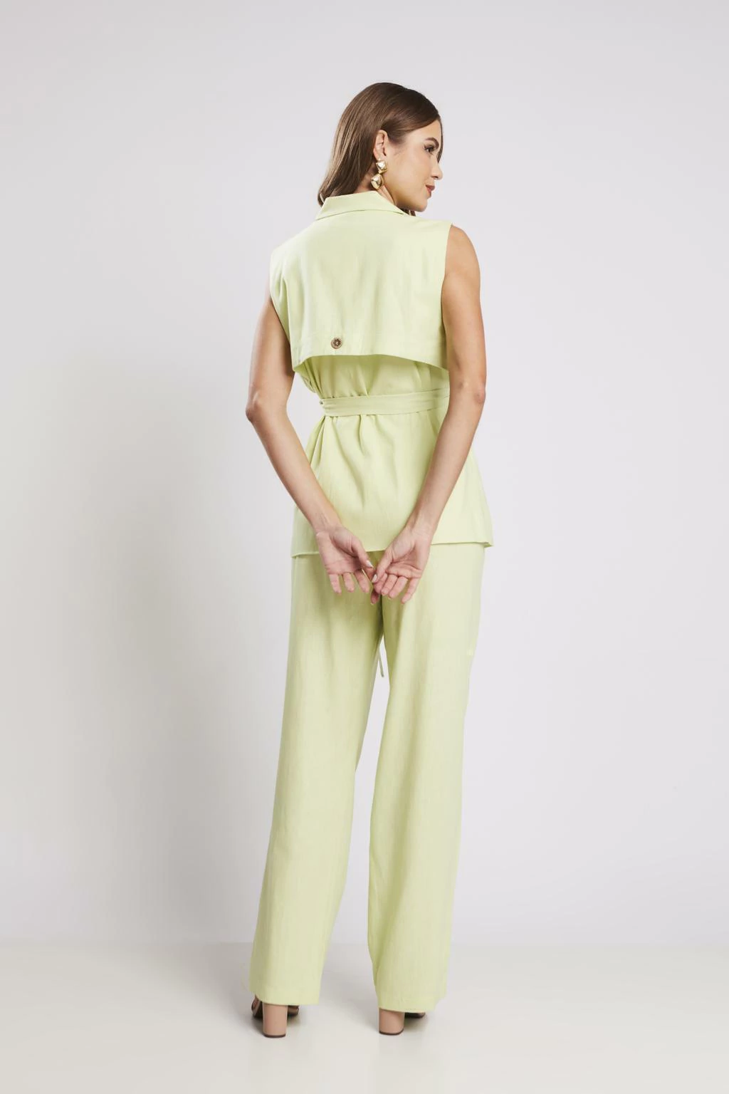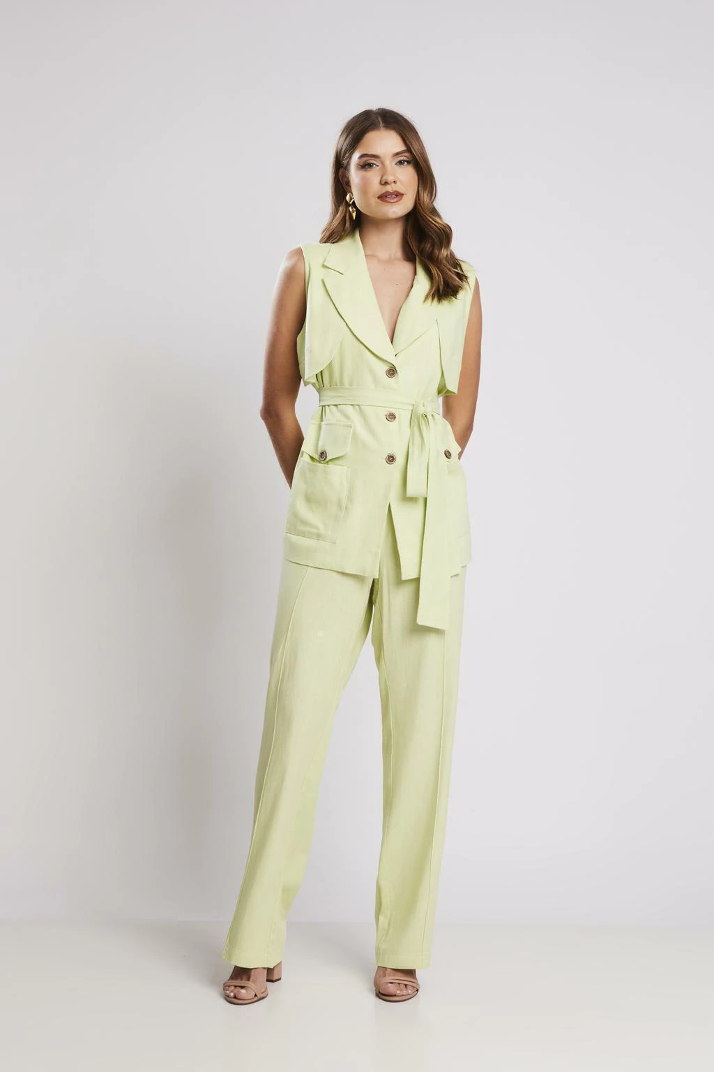 Use o Maxi Colete Verde Claro sobre uma blusa de manga longa para um look de trabalho sofisticado, ou combine com uma camiseta básica e calças jeans para um visual casual chic. A faixa para amarrar permite ajustar a silhueta, realçando a cintura e oferecendo um toque personalizado ao seu estilo.