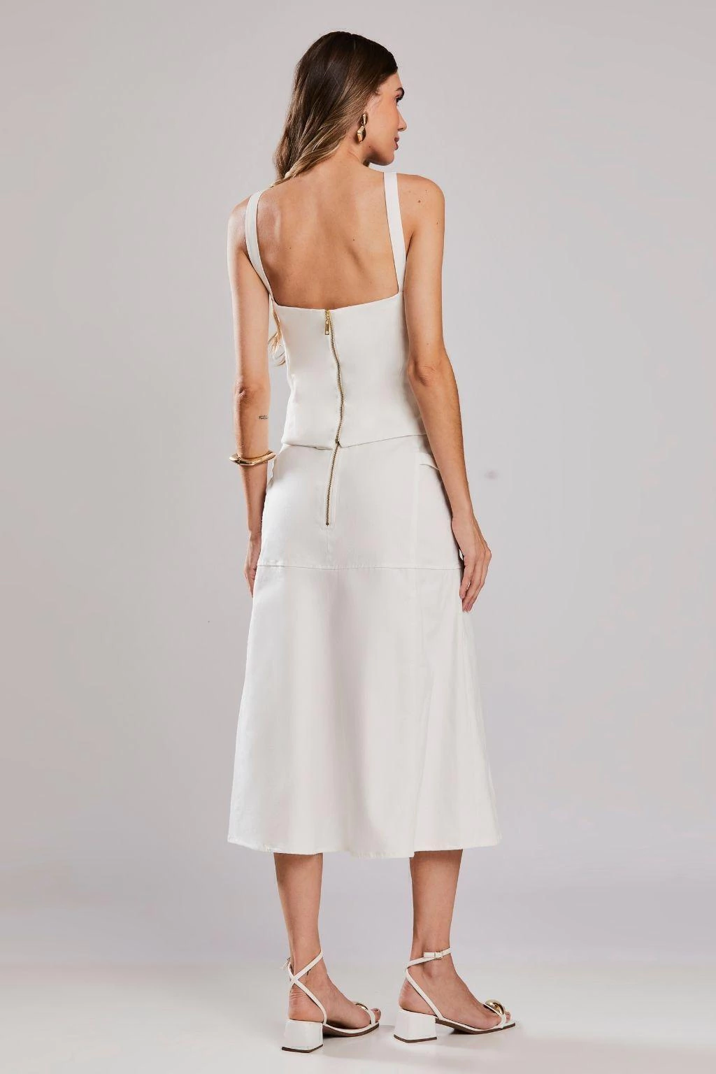Combine a Saia Midi Fluida Sarja Papillon Off White com uma blusa de alfaiataria para um look sofisticado e profissional, ou opte por uma t-shirt básica para um visual casual e despojado. Finalize com sandálias ou sapatilhas para um toque de elegância no dia a dia.