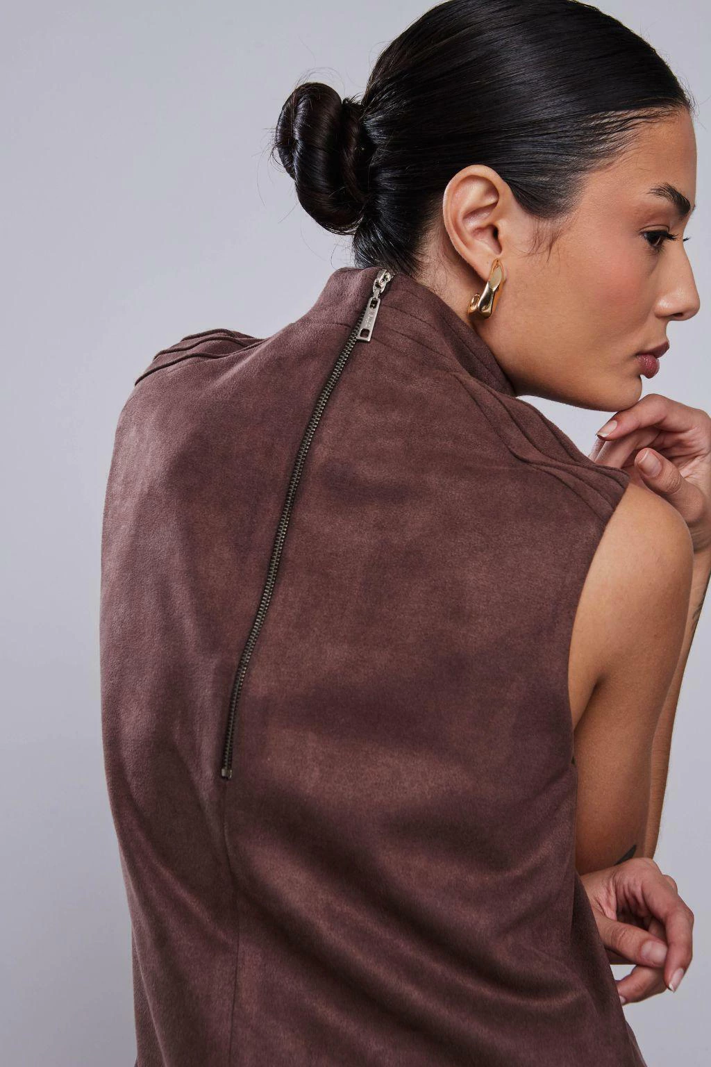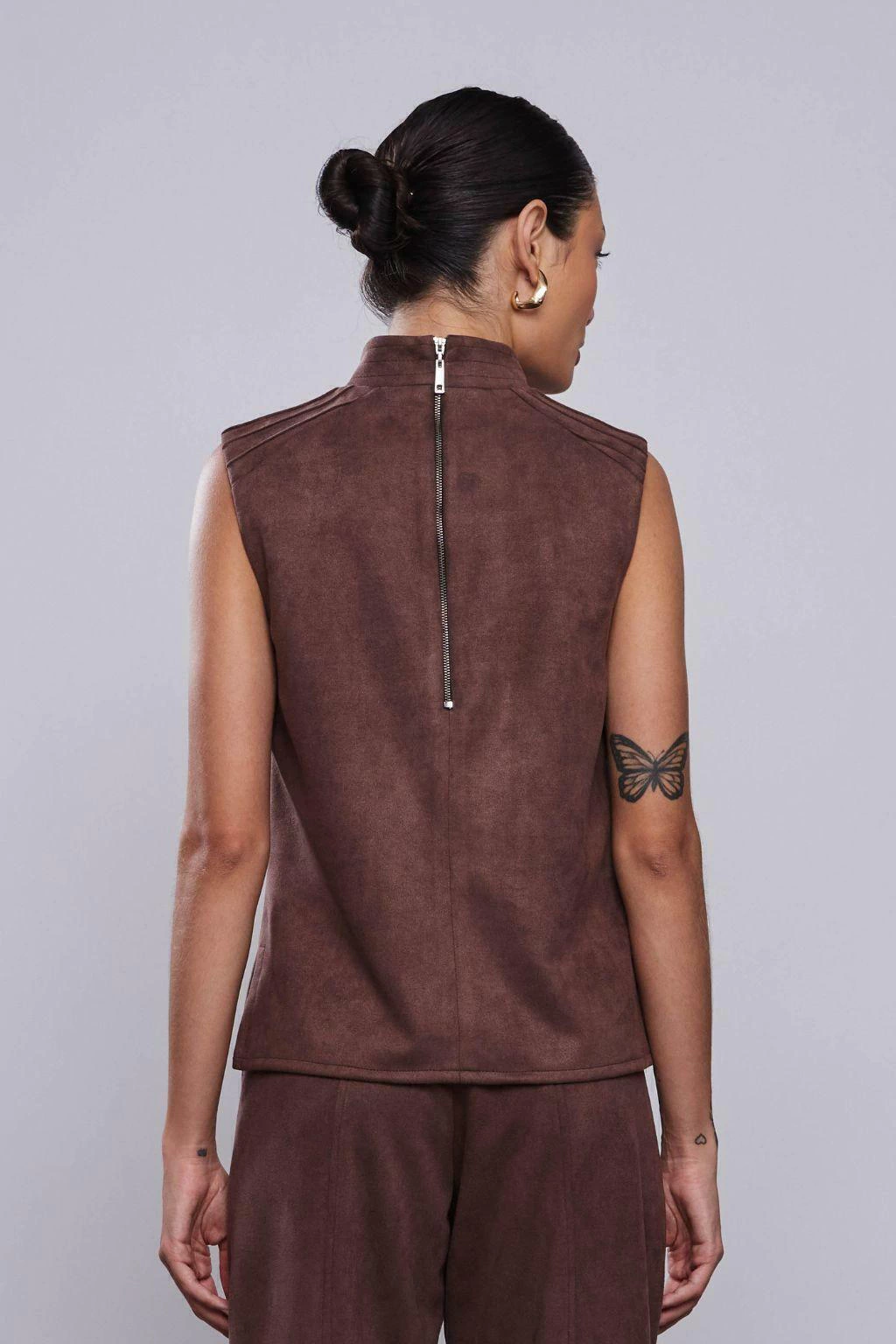 O Top de Gola Alta em Malha Suede Nobu Chocolate da Rubinella é a escolha ideal para quem busca composições sofisticadas e versáteis. Com uma modelagem reta e acabamento aveludado, esta peça valoriza o corpo com elegância. As nervuras nos ombros criam um detalhe delicado que adiciona textura e sofisticação ao visual. O fechamento com zíper nas costas garante praticidade e um acabamento impecável, tornando-o perfeito para ser usado tanto sozinho quanto sob sobreposições elegantes nos dias mais frios.