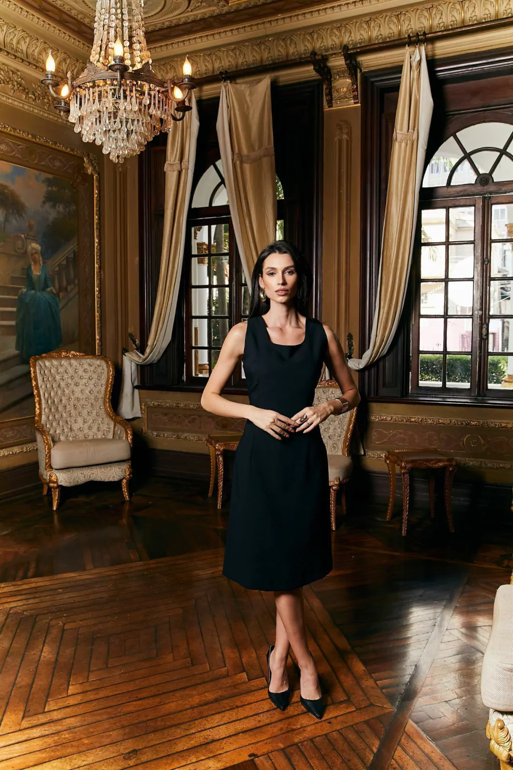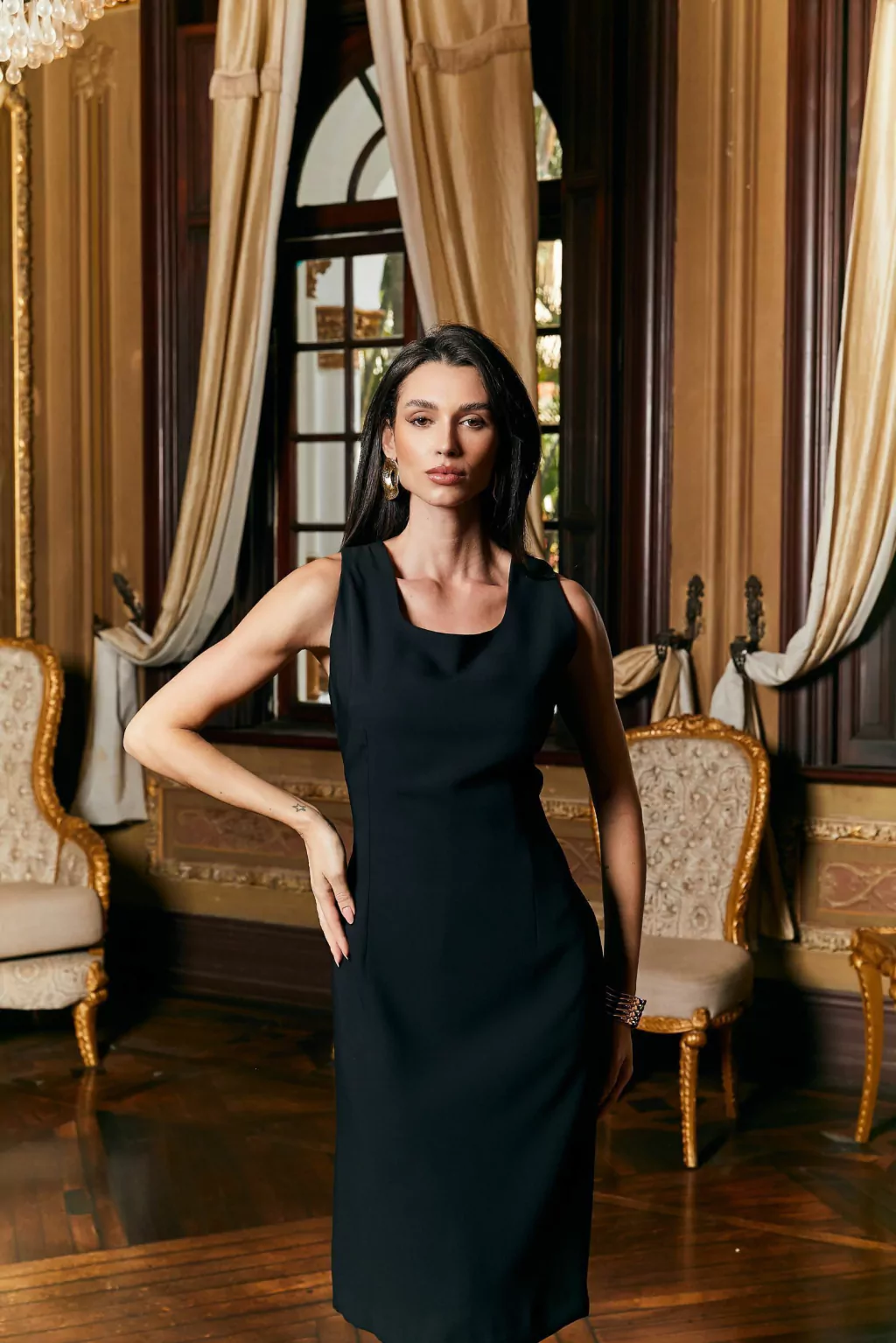 Eleve seu estilo com o sofisticado Vestido Alfaiataria Midi Preto da Rubinella. Confeccionado em 100% poliéster, este vestido é ideal para ocasiões que exigem elegância e um toque de formalidade.