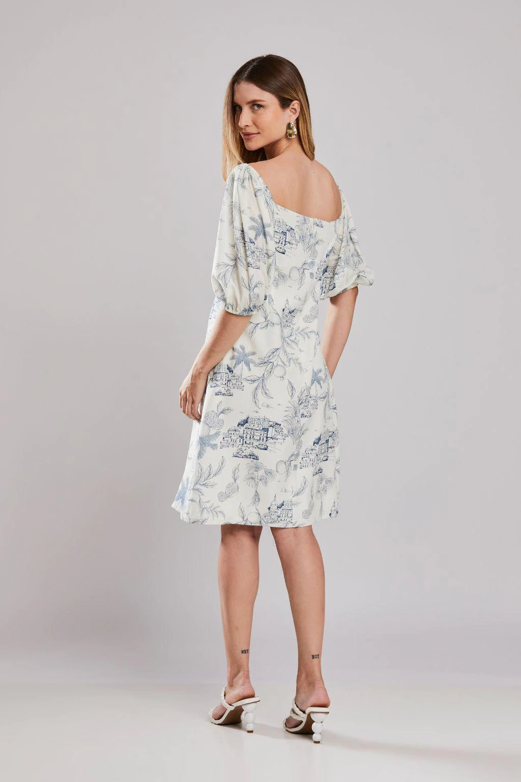 O Vestido Mangas Bufantes Porto da Rubinella é a escolha ideal para mulheres que desejam aliar elegância e conforto em uma única peça. Com um design que chega na altura dos joelhos, este vestido combina feminilidade e presença, trazendo um toque de sofisticação ao seu guarda-roupa. O decote quadrado e as mangas bufantes curtas conferem um charme especial, valorizando a silhueta de forma harmônica e equilibrada, entre o romantismo e a modernidade.