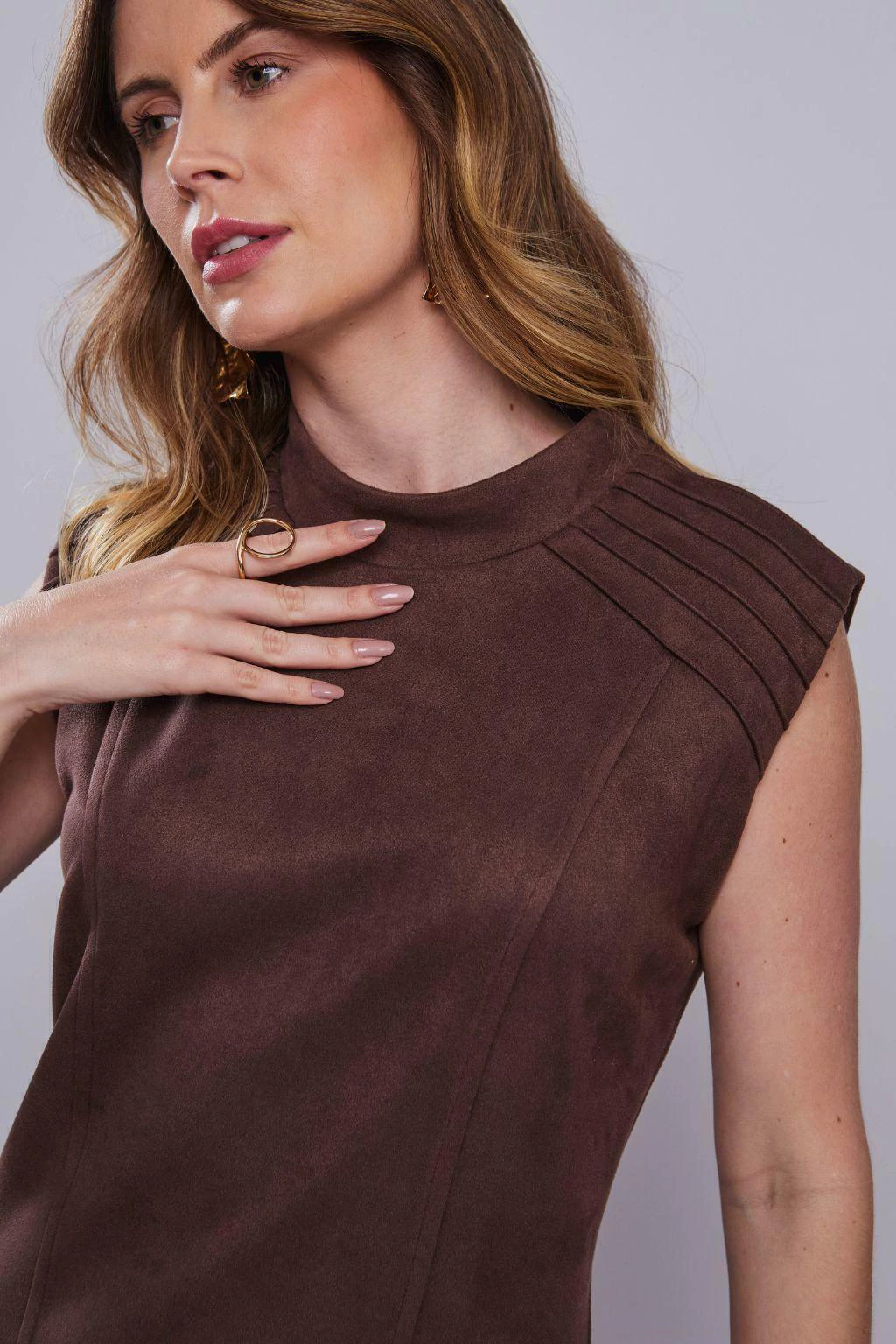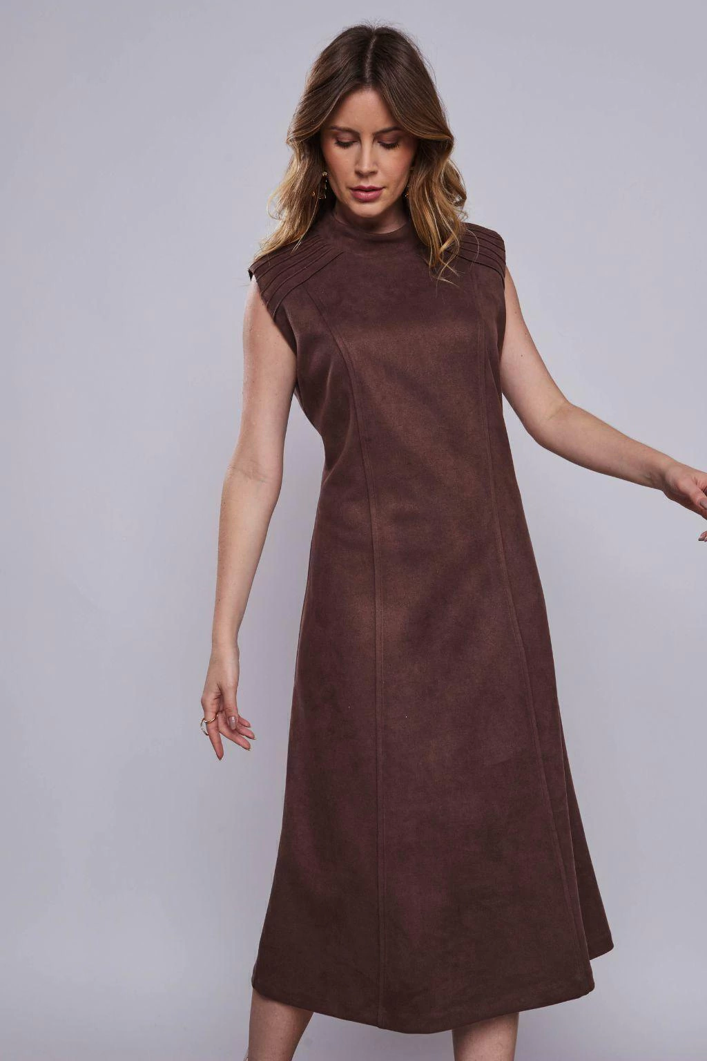 O Vestido Midi Nobu Chocolate da Rubinella é a definição de elegância minimalista. Com uma modelagem reta e levemente acinturada, este vestido valoriza a silhueta feminina com sutileza e classe. Confeccionado em malha suede Nobu, que oferece um toque macio e um acabamento aveludado, o vestido apresenta nervuras nos ombros que estruturam o visual e acrescentam um charme discreto. A gola alta é uma escolha inteligente, pois alonga o colo e traz um ar sofisticado, enquanto o zíper nas costas garante um fechamento prático e delicado.